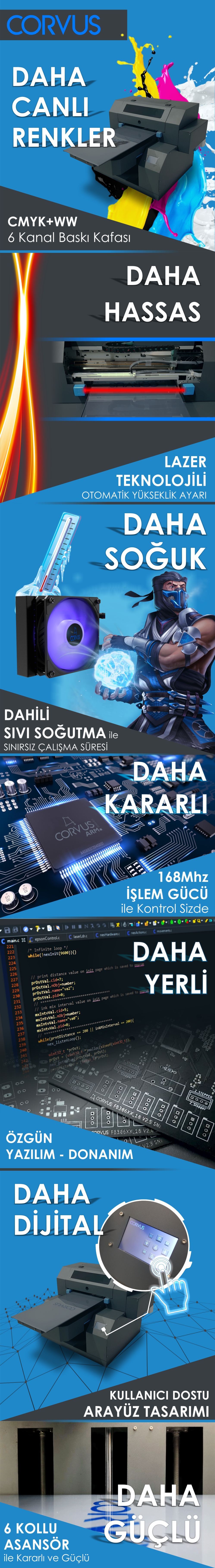 28x60 Baskı Alanı ve 20cm Baskı Yüksekliği ile bir çok alanda kullanıma uygun. Kompakt tasarımı sayesinde ufak alanlarda da çalıştırabileceğiniz, otomatik yükseklik algılama, otomatik boya karıştırma ve dahili sıvı soğutmalı, 6 renk UV masaüstü yazıcıdır.